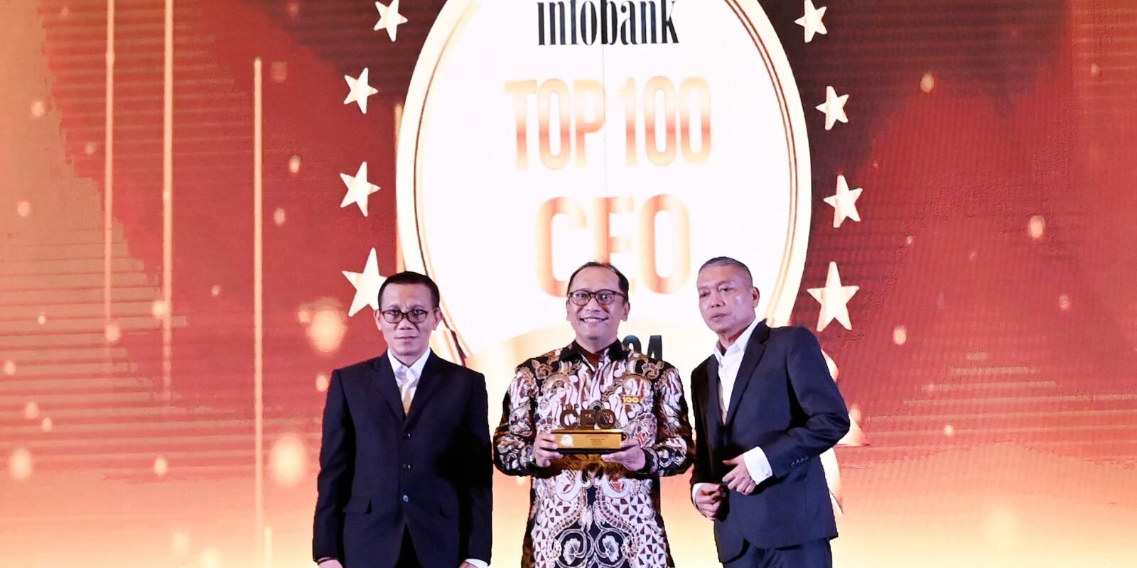 Direktur Utama PertaLife Insurance, Hanindio W. Hadi (tengah), menerima penghargaan TOP CEO 2024 dari Infobank Media Group.