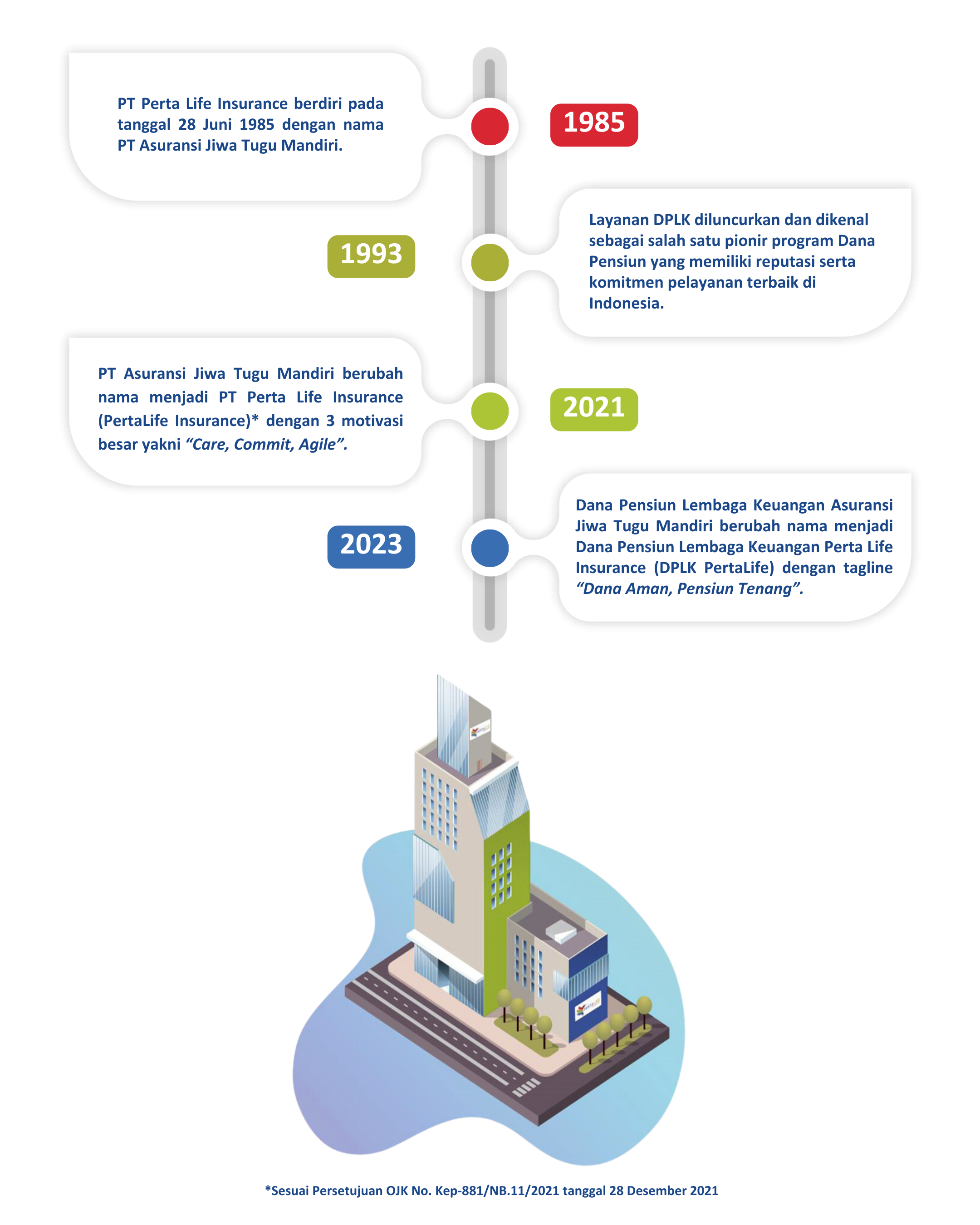 DPLK didirikan pada tahun 1993 dan dikenal sebagai salah satu pionir program Dana Pensiun yang memiliki reputasi serta komitmen pelayanan yang terbaik di Indonesia. Pada April 2011 DPLK telah memiliki sertifikasi ISO 9001:2008 tentang Kualitas Layanan Mutu, dan pada bulan April 2017 kembali memperoleh sertifikasi ISO 9001:2015 tentang Pension and Fund Management Services. Per Desember 2020, dana kelolaan DPLK sudah mencapai lebih dari Rp3,6 Triliun dan melayani lebih dari 177 Perusahaan Peserta Program DPLK, dengan total peserta lebih dari 53.000 orang.